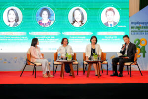 Aquarii BD moderated the panel discussion “Unlocking Systemic Transformation Through the Power of Collaboration” at CAMESCO24, with panelists from Sasakawa Peace Foundation, Aspen Network of Development Entrepreneurs, and Swiss Entrepreneurship Program. The discussion focused on barriers to collaboration within Cambodia’s entrepreneurial ecosystem, with panelists addressing issues of resource duplication and misaligned objectives.