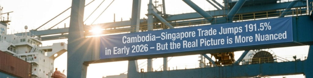 Cambodia’s bilateral trade with Singapore surged 191.5% year-on-year in January–February 2026, according to data from the General Department of Customs and Excise (GDCE), reported in the Khmer Times on 26 March 2026. The headline figure is striking, but its composition – and its context – tells a more important story for businesses and investors seeking to understand what is structurally shifting in Cambodia’s trade geography.